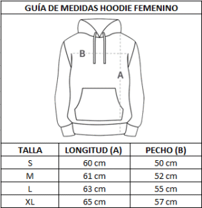 La modelo mide 1.50 m y está usando un hoodie talla S.